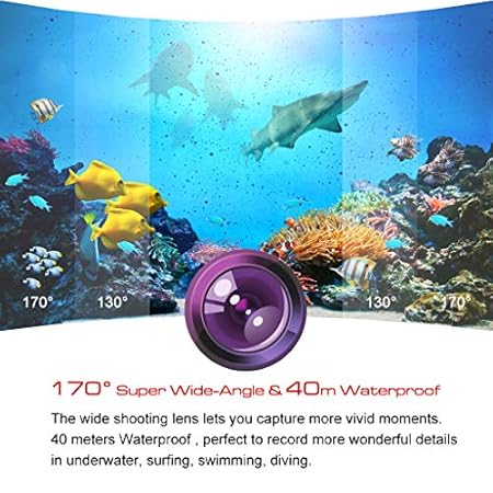 đ·【Die 170°Weitwinkel & 40M Wasserdichte】:Unterwasserkamera verwendet ein 7-Glas-Fischaugenobjektiv, kombiniert mit SONY Sensor und CPU-Algorithmen, kann die Kamera automatisch die 170°Weitwinkel Video Filmmaterial korrigieren, keine Notwendigkeit, den Weitwinkel anzupassen. Ausgestattet mit einem robusten IP68 GehĂ€use, Wasserdichtigkeit bis zu 40 Meter. Ideal zum Schwimmen, Tauchen, Rafting, Surfen und anderen Wassersportarte.