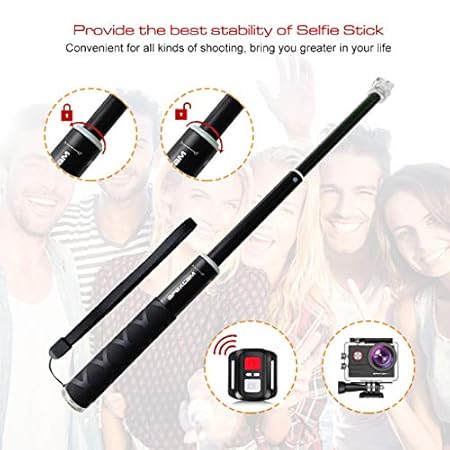 đ·【Super Zubehör】: Mit einer Multifunktionstasche ausgestattet, sorgen Sie sich nicht um den Verlust Ihres Zubehörs. Der Selfie-Stick zeichnet mit der Fernbedienung Ihr Leben in Echtzeit auf. Eine Vielzahl von Montagezubehör, das auf ein Fahrrad oder einen Helm montiert werden kann.