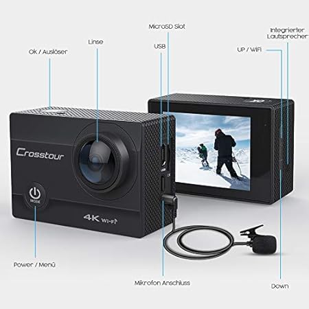 Die besten Unterwasserfotografie 2020 , bewertungen, test & preisvergleich , jezt kaufen Crosstour Action Cam 4K 20MP WiFi Fernbedienung und Externes Mikrofon EIS Helmkamera Unterwasser 40m Wasserdicht wer nicht zu viel Geld ausgeben möchte.